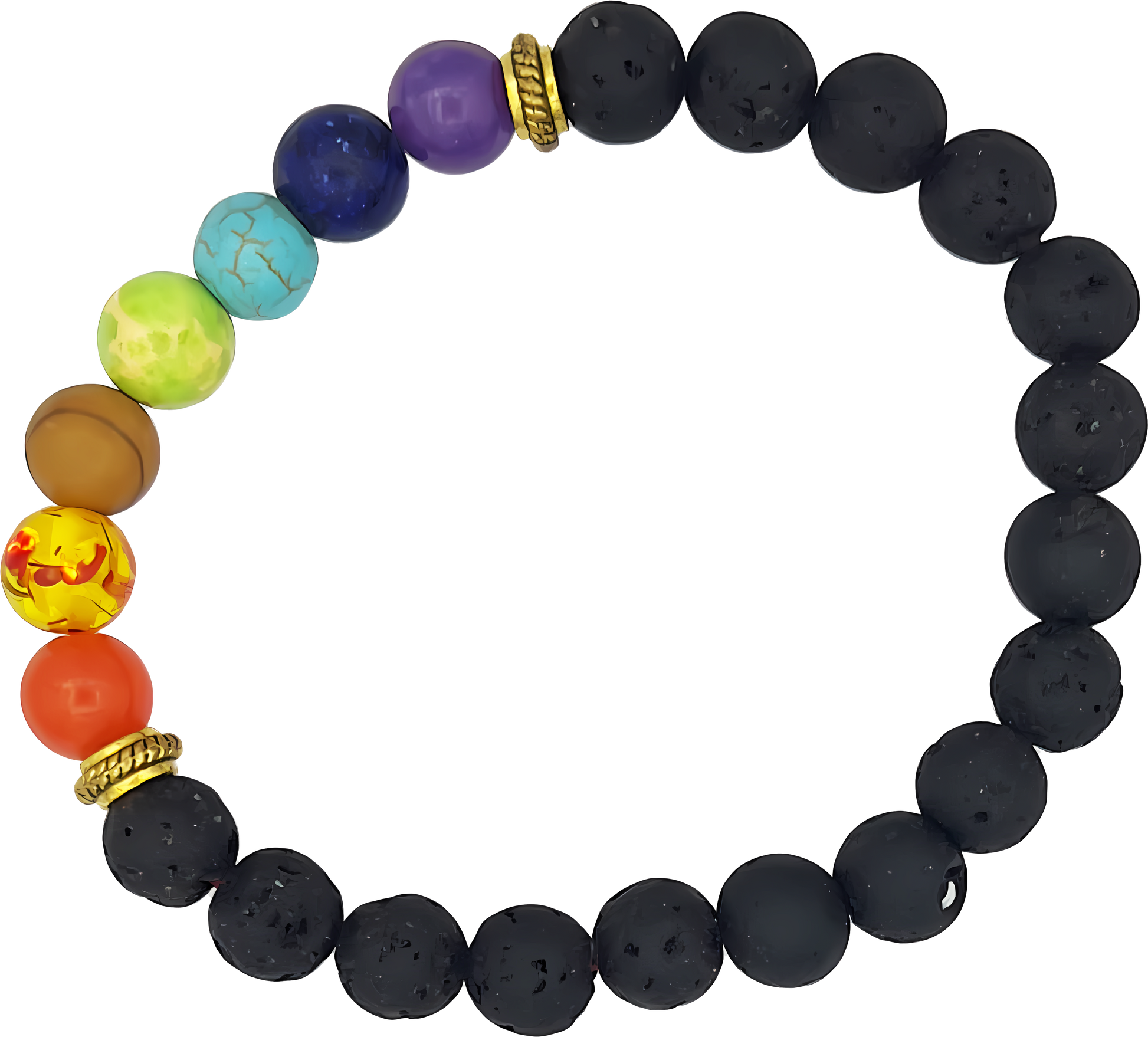 - A beautiful blend of vibrant chakra stones and earthy lava beads.