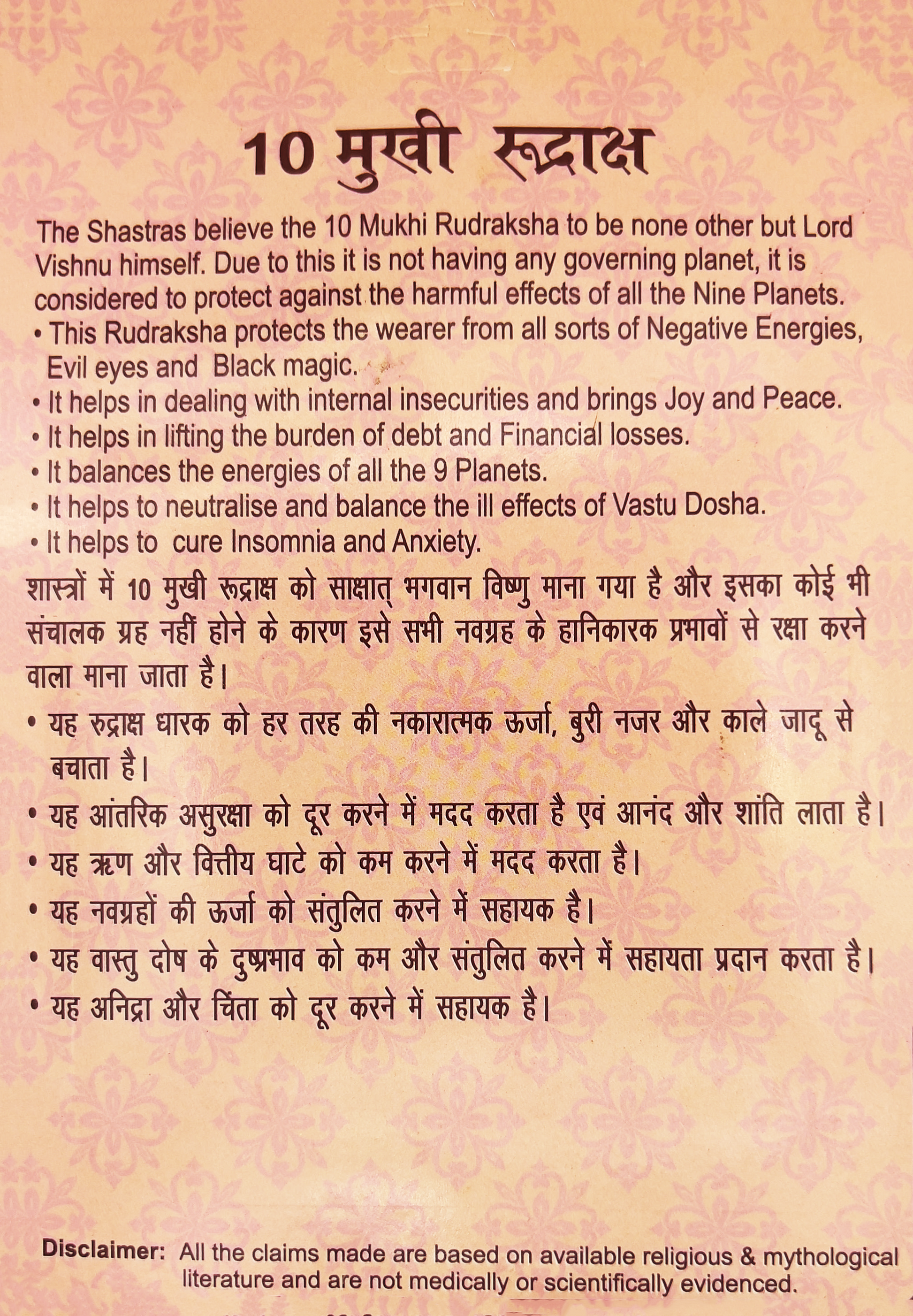- The 10 Mukhi Rudraksha is certified and lab-tested for authenticity, ensuring you receive a genuine and powerful spiritual tool for protection and peace.